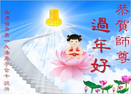 法轮大法好!真善忍好! 感谢师尊慈悲苦度!叩拜师尊! 山东省青岛市大法弟子恭祝师尊新年快乐!