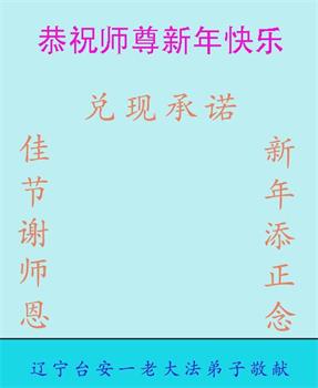 辽宁台安一老年大法弟子恭祝师尊新年快乐!