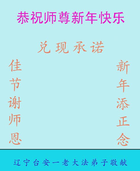在新的一年里,弟子要修好自己,做好三件事,多救人。 山东省青岛市全体大法弟子恭祝慈悲伟大的师父过年好!
