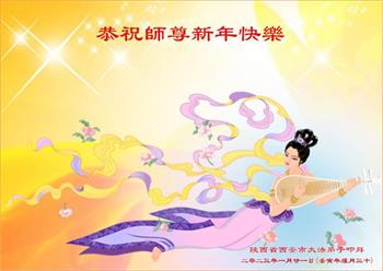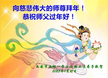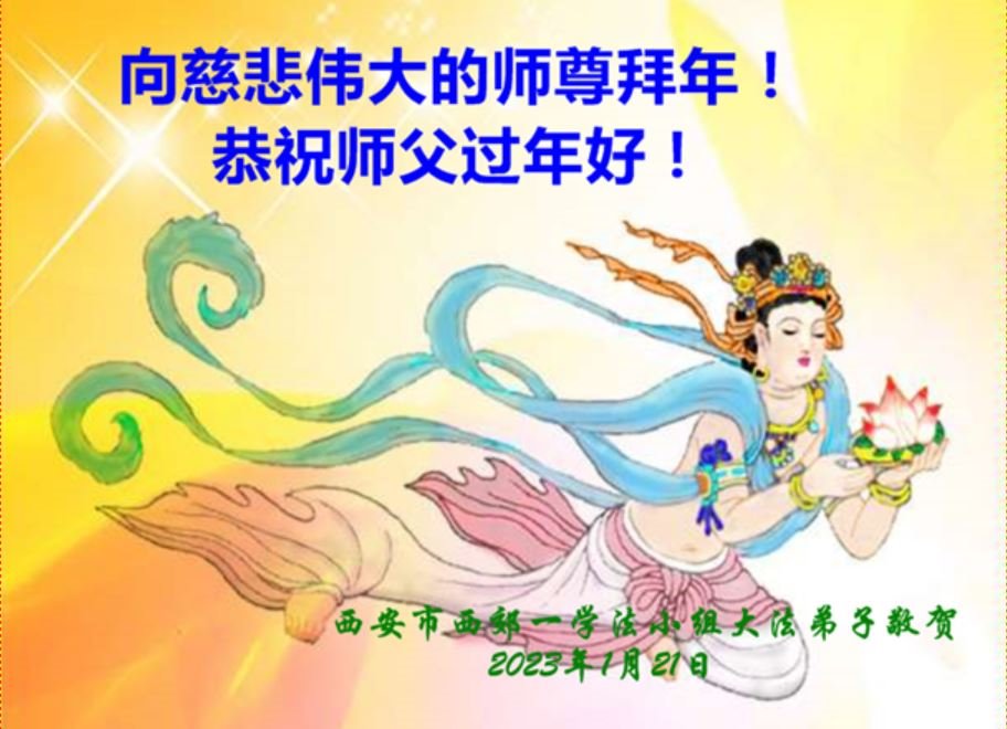 谢谢师父的慈悲和救度!弟子一定修炼好自己,只有修炼好自己,才能做好救人的事,求师父加持弟子。 陕西省西安市西郊一学法小组大法弟子恭祝慈悲伟大的师尊过年好!