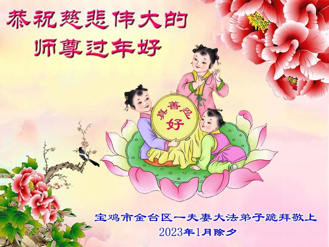 陕西省宝鸡市金台区一对夫妻大法弟子恭祝慈悲伟大的师尊过年好!