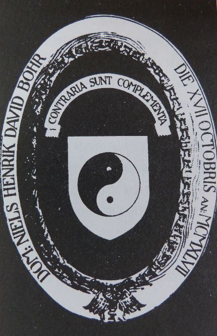 无独有偶。让我们回到80年前。对于东方文化一直关注的玻尔,在提出量子物理的“互补原理”之后,于1937年访问了中国,古代中国关于对立两极的概念给他留下了深刻的印象。十年之后,由于玻尔对于丹麦文化的杰出贡献而被封爵,当他必须为自己的礼仪罩袍选择一个适当的图案时,他选定了中国的“太极”图,这个图形象征着阴阳两极的对立而互补的关系,玻尔在图案上题词“对立物是互补的”(Contraia sunt complementsa),来表示他认可东方古老的智慧与西方的物理学之间深刻的和谐一致。[5]