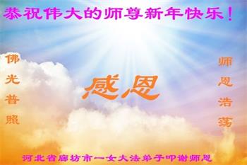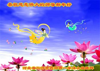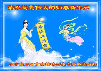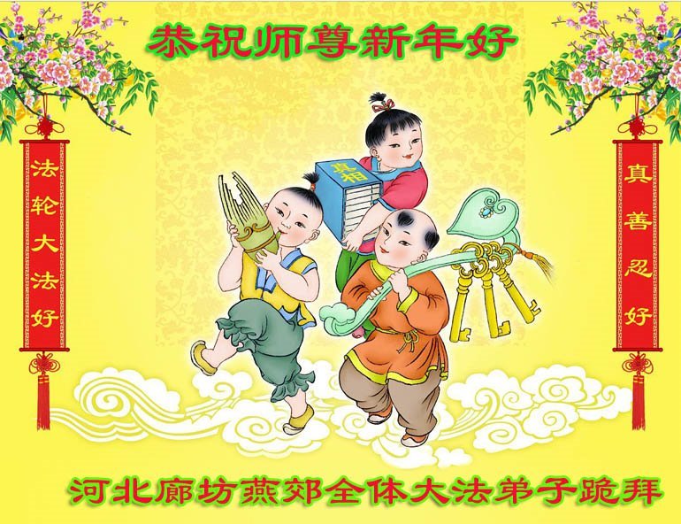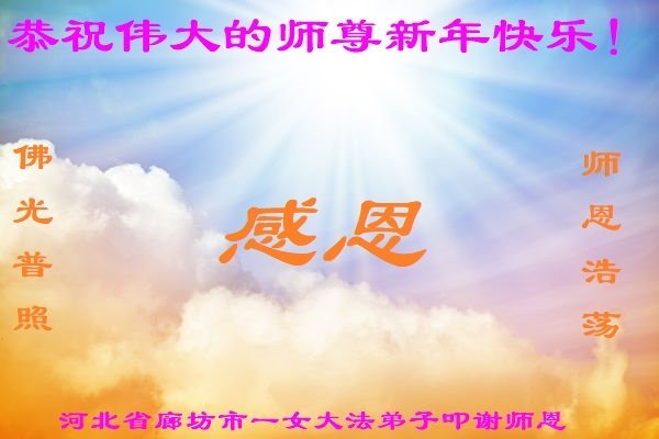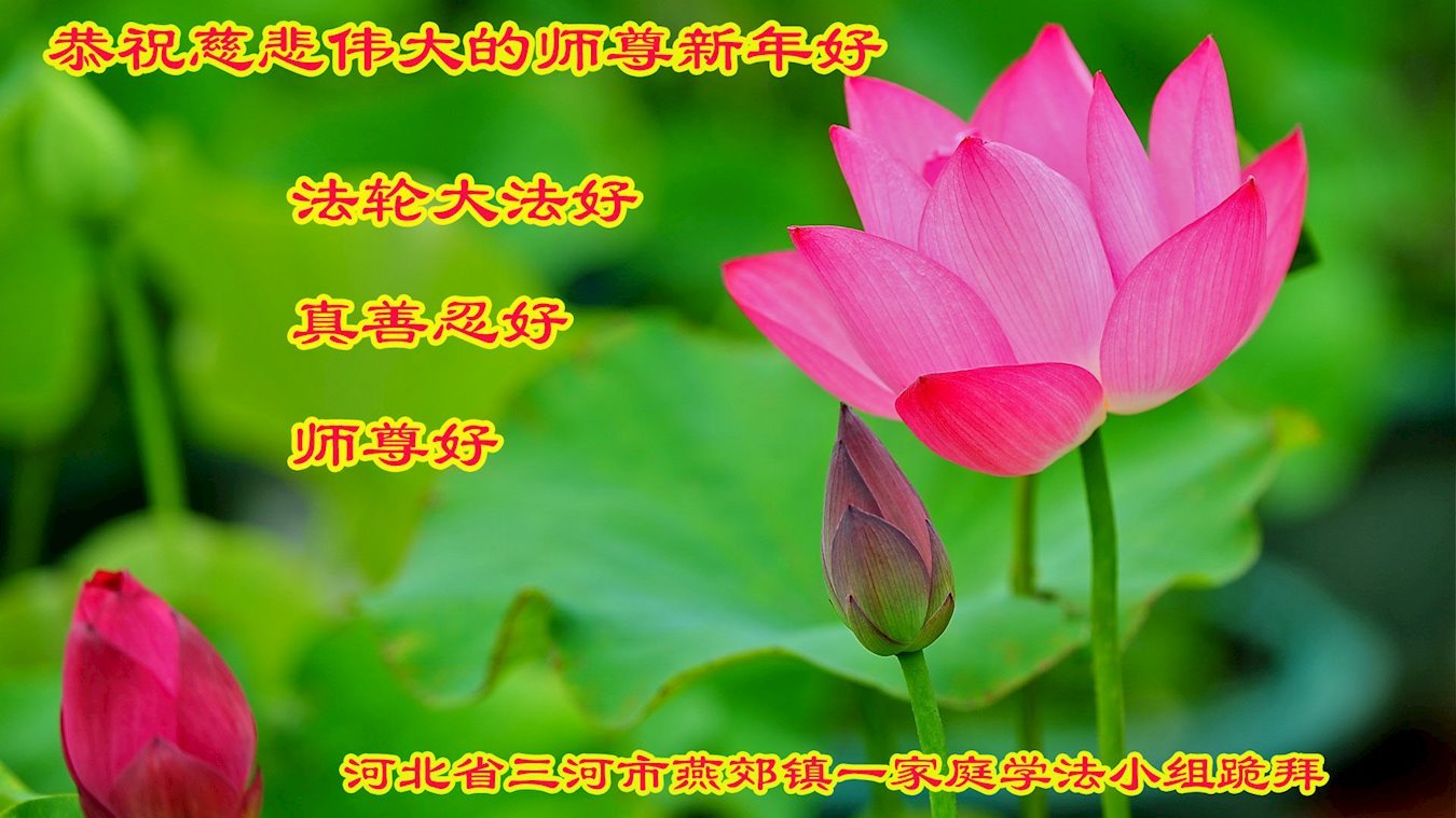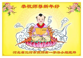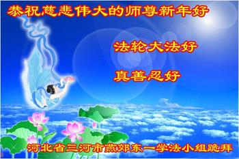 恭祝慈悲伟大的师尊新年好! 法轮大法好!真善忍好!师尊好! 河北省三河市燕郊镇一家庭学法小组大法弟子敬上 河北省廊坊市三河市燕郊镇一学法小组大法弟子恭祝慈悲伟大的师尊新年好!