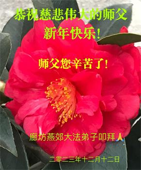 【明慧网二零二三年十二月二十九日】 河北省廊坊市一女大法弟子恭祝伟大的师父新年快乐!
