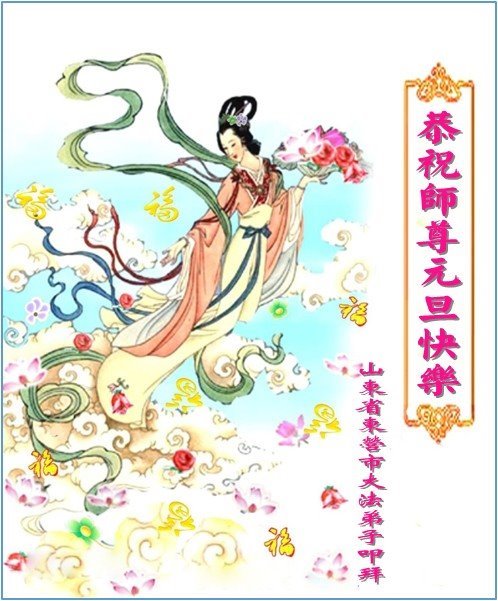 山东省威海市文登区一大法弟子及全家恭祝师父新年好!