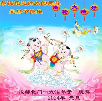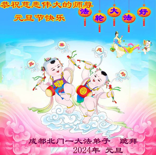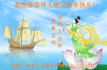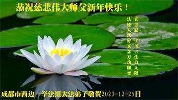 【明慧网二零二三年十二月三十日】 四川省成都市西边一学法组大法弟子恭祝师父新年快乐!
