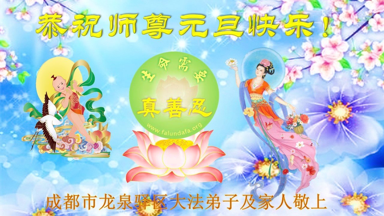 四川省成都市大法弟子及家人恭祝师尊元旦快乐!
