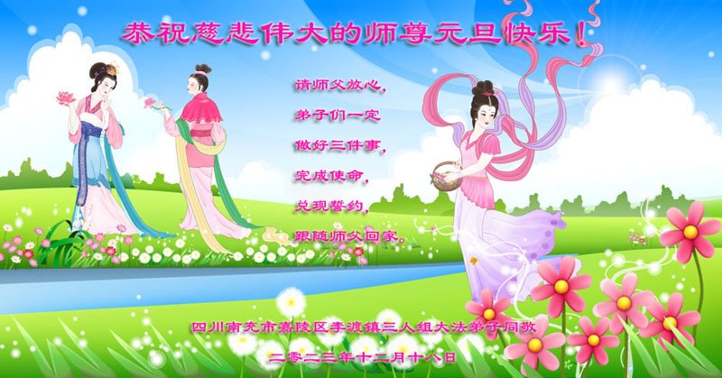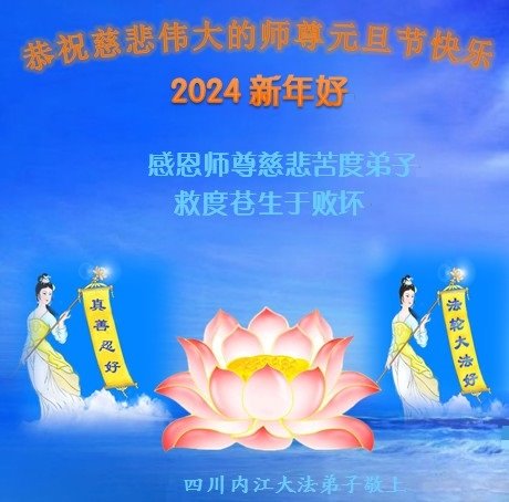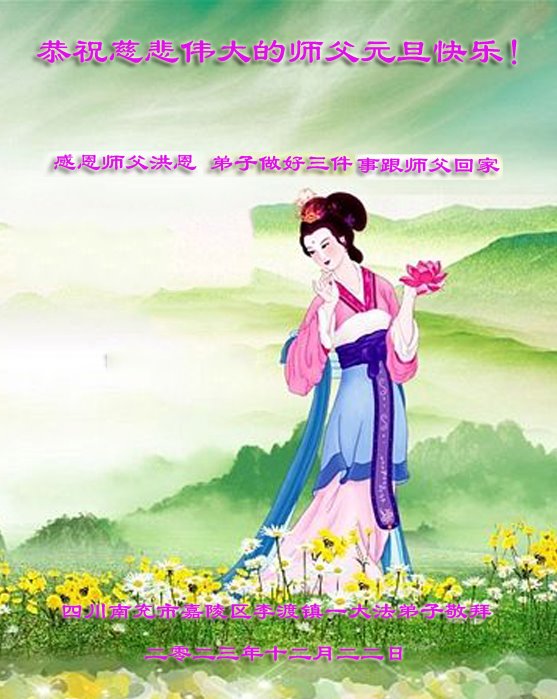 【明慧网二零二三年十二月三十日】 四川内江大法弟子恭祝慈悲伟大的师尊元旦快乐!新年好!