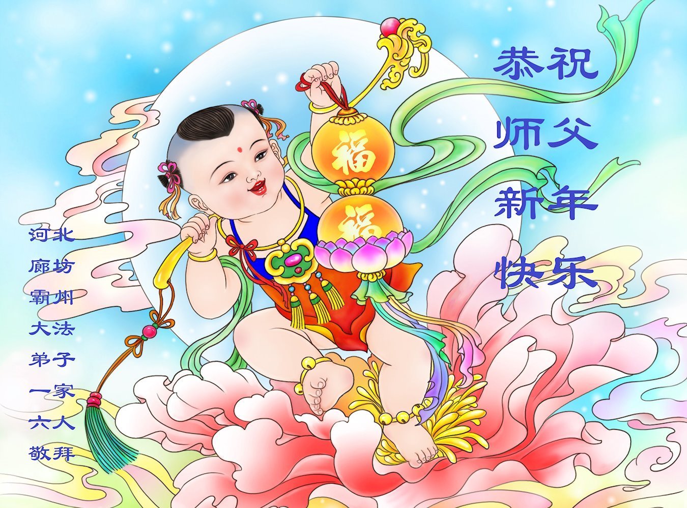 河北廊坊霸州市农村大法弟子全家六人恭祝慈悲伟大的师尊新年快乐! 河北霸州农村大法弟子恭祝师父新年快乐!