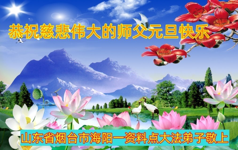 在新的一年里,弟子要多学法,与同修共同配合,做好三件事,多救人,报答师尊的慈悲救度。 山东烟台龙口市一大法弟子叩拜 山东省烟台海阳市一大法弟子恭祝慈悲伟大的师父元旦快乐!