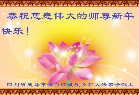师尊您好!恭祝伟大师尊新年快乐! 感恩师尊慈悲救度与保护,弟子要努力做好三件事。修炼的意志,永不动摇。 做一个合格的大法弟子,跟师父回家。 弟子双手合十跪拜恩师 四川省成都市青白江姚度乡村大法弟子恭祝师尊新年好!