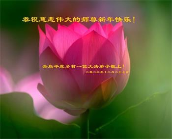 感恩师尊的慈悲苦度!感恩师尊时时刻刻保护着弟子,感恩师尊的点化一路拉扯弟子走在神的路上,使弟子踏上回归家园的路。在此我代家人一起向伟大的师尊敬上最真诚的问候,恭祝师尊新年快乐! 弟子跪拜! 山东省青岛平度乡村一位大法弟子恭祝慈悲伟大的师尊新年快乐!