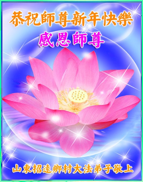 新年将到,弟子恭祝师尊新年快乐!感恩师尊慈悲救度。每时每刻我都能感到师父的慈悲保护,我真实的感到师父为我操尽了心,千言万语表不尽对师父的感恩,我一定听师父的话做好三件事,真修实修直至圆满。 山东省烟台市招远市一乡村大法弟子恭祝慈悲伟大师尊新年好!