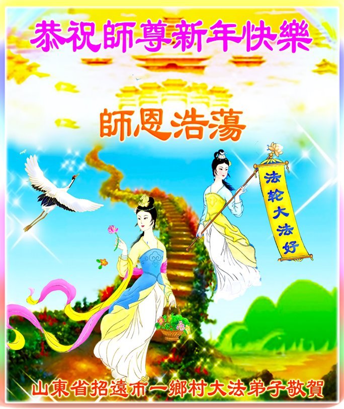 在新年即将到来之际,我满怀感恩的心祝伟大的师尊新年快乐!师尊用巨大的承受和付出为弟子延续来的宝贵时间是叫我们救人的,弟子要万分珍惜当下的分分秒秒,抓紧时间,修好自己,救度世人,努力做好三件事,兑现来世的誓约。 山东省烟台市招远市乡村大法弟子恭祝慈悲伟大的师尊新年快乐!