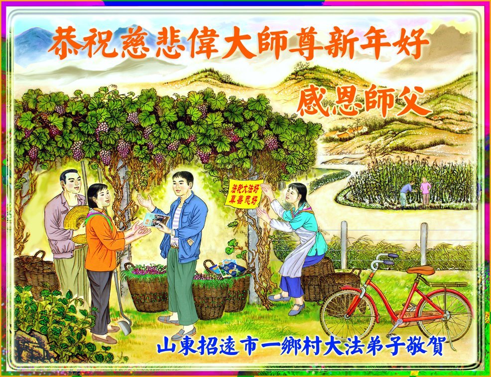 山东烟台莱州一农村大法弟子携全家恭祝师尊新年快乐!