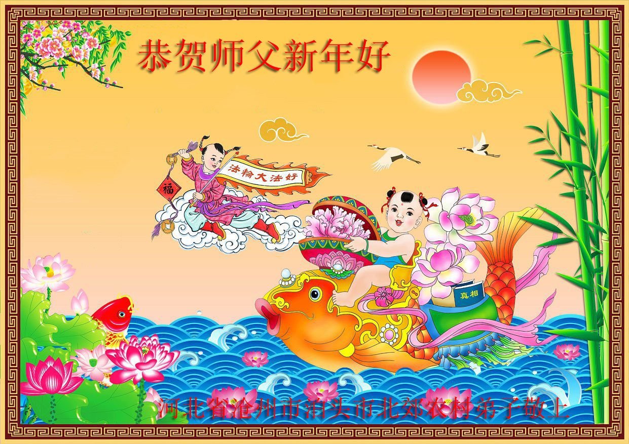 恭祝师父新年快乐! 感恩师父!师父洪大的慈悲圣恩无限!师父您辛苦了!弟子们谢谢您!我们会更加精進!多多救人!完成好历史赋予我们的伟大的神圣使命。 河北省沧州市泊头市北郊农村大法弟子敬上 辽宁省大连市普兰店区一农村男大法弟子恭祝师父元旦快乐!