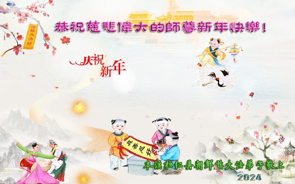 辽宁抚顺新宾满族自治县全体大法弟子敬上 吉林省延边朝鲜族自治州一老年朝鲜族学法小组大法弟子恭祝师尊新年快乐!