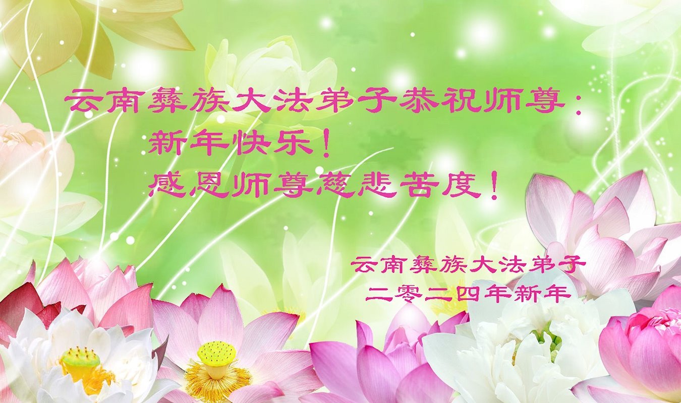 云南彝族大法弟子恭祝伟大师尊:新年快乐! 感恩师尊! 云南彝族大法弟子敬上 二零二三年十二月二十四日 云南省西双版纳大法弟子恭祝慈悲伟大的师尊新年快乐!