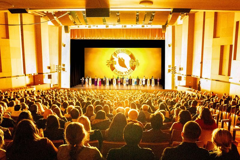 演出中,舞台上绚丽的色彩,轻盈的舞姿,神韵交响乐团独特的演奏,艺术家们全身心投入的纯善纯美的演出,演绎了中国五千年的神传文化。 观众纷纷表示:“神韵唤醒心灵,趣味盎然,提神醒目,振奋精神,让一切都焕然一新。”“神韵晚会,精彩美妙,也告诫我们要变好。”“神韵充满神性光辉,平和又安详。神韵改变了我们,从进剧院门到离开,我们感觉好像变了一个人。”“真、善、忍,演出给世界带来某种东西。通过舞蹈,我真的找回了生命的意义,对未来有了信心。”有的观众举家跨国追神韵,有的则因之前看过演出,深受感动,因此邀上全家族二十人共观神韵。 .纪.元;)'> 图3:二零二三年二月二日至五日,神韵纽约艺术团在加拿大蒙特利尔艺术中心的维尔佛雷德-佩雷提埃剧场(Salle Wilfrid-Pelletier de Place des Arts)上演了五场演出。图为二月四日晚,演出结束时神韵演员谢幕。(大.纪.元;) |