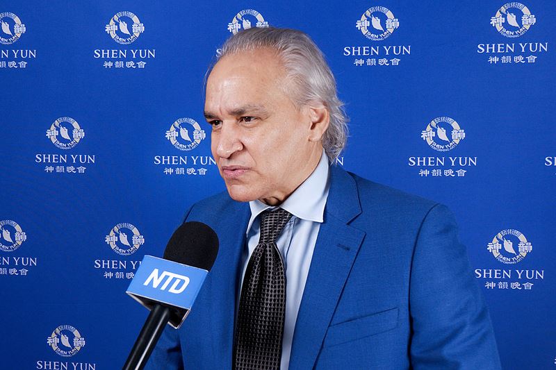 埃杜阿多-布里托国家剧院总经理卡洛斯·维帝亚(Carlos Veitía)在自己管理的剧院观看了神韵的第一场演出,他表示:“这是一场人人必须观看的秀。是每个人都必须来看的演出,全世界都应该追随神韵。” 维帝亚也是国家芭蕾舞团创始人,他对神韵艺术家们赞不绝口:“神韵这里都是伟大的舞蹈演员,非常优秀。神韵令我赞赏的是,演出的精美绝伦,演员的付出,这就是纪律、敬业与爱心。舞蹈整齐一致,演员们乐感超强。舞蹈编排得美不胜收,我从内心深处祝贺他们。” “在演员身上,我看到了信仰,看到了虔诚。这对每一个艺术家都很重要,的确如此。我看到了他们的诚挚,他们全身心在诠释着文化。”不仅仅是舞蹈演员,对神韵音乐家们他也惊叹万分:“我怎么可以不提壮观辉煌的乐团呢?!令人叫绝的乐团,精美绝伦!我很欣赏神韵,整体上非常专业,又蕴含高尚美德。我的理解是,神韵是全世界的榜样。恭贺神韵。” 他认为神韵在他管理的剧院演出,是他们无上的荣耀:“神韵莅临是我管理剧院的辉煌时刻。神韵是一个珍贵的艺术团,训练非常有素。所有国家、所有的世人,都应该观看神韵。中国文化是如此博大精深,如此历史悠久,很棒,今天一饱眼福。国家剧院能够上演神韵晚会,是我们无上的荣耀。” 国家交响乐团音乐总监:神韵全新独创 展现顶级辉煌 !唐!人:电视台)'> 图15:二零二三年二月三日晚,多米尼加共和国交响乐团音乐总监何塞·安东尼奥·莫利纳(José Antonio Molina)观看了神韵巡回艺术团在多米尼加圣多明各的埃杜阿多-布里托国家剧院卡洛斯-皮安蒂尼厅(Eduardo Brito National Theater Carlos Piantini Hall)的第三场演出。(新!唐!人:电视台) |