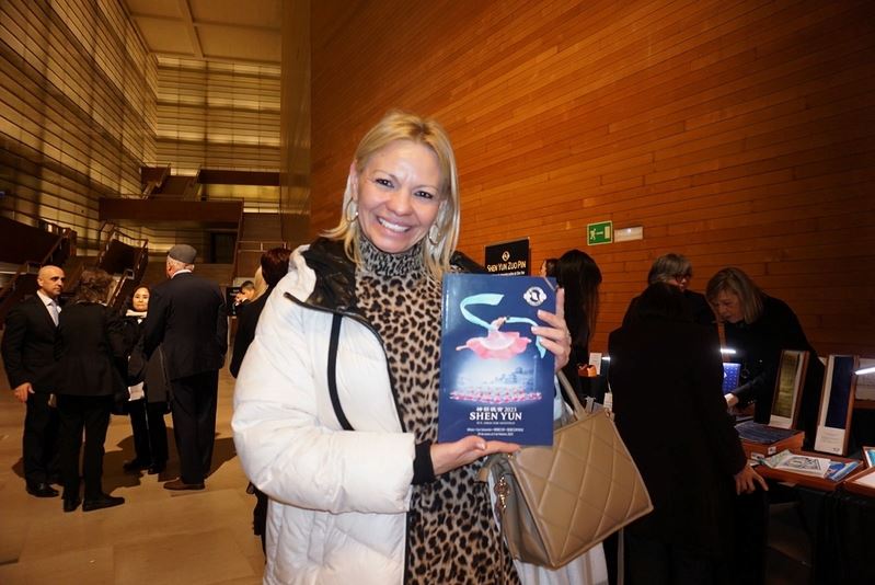 罗宾·维兰库尔(Robin Vaillancourt)是蒙特利尔南岸的建筑商,拥有一间建筑公司。他非常喜欢神韵演出,观赏神韵后让他感到“远离了日常的匆忙,内心变得平静了”。 维兰库尔先生的祖父是华人,观看了神韵演出后,他觉得:“我找到了自己的根,我觉得自己如重生了一般,从文化上重生了。那是我的祖辈们曾经依存的文化,但是我没有机会去了解,看完神韵后,如同为我打开了一扇门,我想了解更多。” 维兰库尔买了法文版的《转法轮》,他说:“今天在演出中,我不但看到了演员们的平静,我也感受到自己内心平静了许多。这场演出不仅仅带来了视觉的飨宴,不仅仅是看得到的完美,还有更深的内涵。我想读一读《转法轮》,了解更多。” 西班牙公司老板:神韵用艺术表达出人类需要意识到的大觉醒 .纪.元;)'> 图18:神韵环球艺术团于二零二三年一月三十一日在西班牙圣塞瓦斯蒂安库尔素礼堂上演,数字营销公司老板阿莱图萨·阿劳科(Aretuza Arauco)女士观看了神韵演出。(大.纪.元;) |