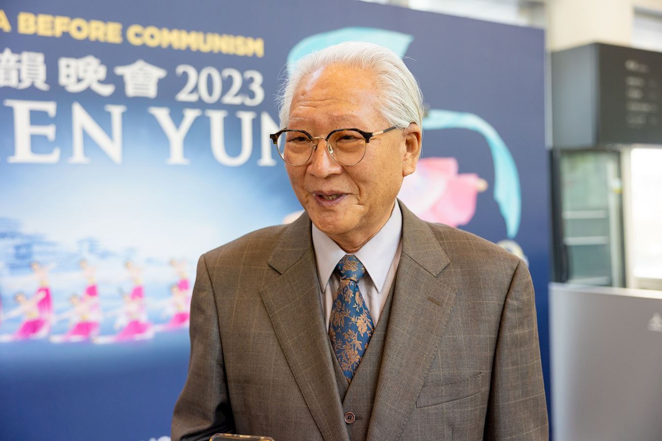 “这是神创造的作品!”韩国忠烈祠安乐书院教育馆馆长许昌硕观看神韵后表示,“这场演出给了我很多感动,是无法用语言表述的程度。” 当看到开场节目,众神下世的画面时,许昌硕说:“我非常震撼。就是那种从天上传达的旨意,那些神的某种启示,是赋予我们的宏图(大场面)。” “演员们的动作整齐划一,精准如一人,太优秀了,观看了一场伟大的演出。”他赞叹,“人类能做出如此玄妙的舞台背景,这实在是很了不起!” 演出中展现的中国传统价值观,他说,“今天的演出中出现了‘真、善、忍’的字样,这真的让人非常感动,虽然是短短的三个字,却是非常高明的。我们都应该把这几个字背下来,不应该看过就忘了。” 他对神韵艺术总监表达敬意,“您真的辛苦了,做出这样的作品,您是创造奇迹的人。将中国的过去和现在融为一体,在异国他乡所付出的辛劳,是无法用语言表达的。” 神韵艺术总监汇总多样专业领域 教授表敬意 .纪.元;)'> 图7:二零二三年二月五日下午,东亚大学名誉教授崔赏润观看神韵世界艺术团在韩国釜山昭香剧场的第五场演出。他说:“神韵让我感动的原因——这是一台集中国传统文化之大成的演出!”(大.纪.元;) |