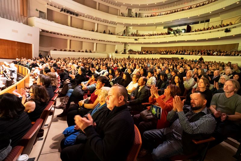 | 【明慧网二零二三年四月一日】(明慧记者周文英综合报道)二零二三年三月十七日至二十八日,神韵艺术团分别在欧美和加拿大等地演出四十场,神韵以舞蹈和音乐的艺术形式,向观众展示中华民族五千年的传统价值观及精神内涵。所到之处,得到各地主流社会的赞扬。 舞台上,神韵将古老的神话和传说、英雄史诗的华章和中国各地民族的风采,一一展现出来;舞台下,中西方观众赞叹、赞佩,很多人感动落泪。佛州劳德代尔堡市宣布三月二十一日至二十三日为该市的“神韵周”。 华裔电影制片人克里斯托弗(Christopher Xiao)赞神韵“是杰作”。大陆留学生雪妍谈起神韵节目禁不住眼中泛泪,她说,为神韵“感到自豪”。神韵带给他们的不只是艺术的享受,更是心灵的震撼,著名的得奖电视主持人凯文布·劳赫(Kevin Brauch)说:“全加拿大为神韵感到骄傲。” .纪.元;)'> 图1:二零二三年三月二十五日晚,神韵新纪元艺术团在美国加州圣路易斯-奥比斯保表演艺术中心(Performing Arts Center San Luis Obispo)进行了今年度在当地的首场演出,当晚票房售罄,现场掌声不断。(大.纪.元;) |