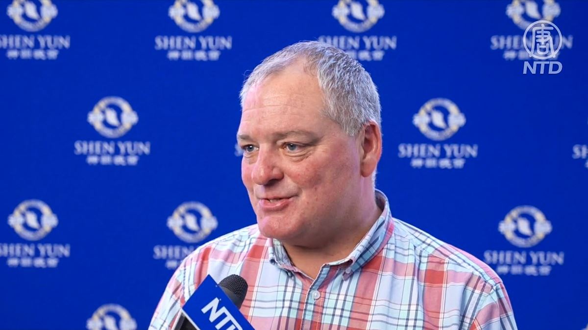 “演出真的太不可思议了,让人印象非常非常深刻,太棒了!”塞缪尔·斯塔夫巴赫(Samuel Staffelbach)是位音乐家,他演奏管风琴,钢琴、横笛,在瑞士卢塞恩拥有自己的公司。他说这是自己第二次观看神韵。他赞叹神韵卓越非凡。 斯塔夫尔巴赫表示:“对我来说很重要的是,演出中的美与神性的结合,从服装、服饰、音乐,整个演出我感受到太多的美,同时神韵还具有深刻的精神内涵,这种结合,我认为是独一无二的,在其它任何音乐演出中我都没见过。我来自音乐界,这样的演出几乎没有。” 资深演员:神韵故事植根于永恒不变的真理 !唐!人:电视台)'> 图10:二零二三年三月二十一日晚,资深演员兼节目制作人布伦特·查普曼(Brent Chapman)观看了美国神韵巡回艺术团在加拿大温哥华的首场演出。(新!唐!人:电视台) |