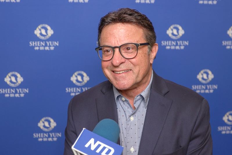 资深演员布伦特·查普曼(Brent Chapman)激动地表示:“神韵故事植根于永恒不变的真理。眼前所见让我感到非常感动。” 演出展现了一些非常有积极意义的内容,也展现一些沉重教训,查普曼认为:“其中一些艰难情况在我们面前上演了。演员们用舞蹈操作表达出来了。历历在目,让人意识到这些事情正在发生。这些故事,都植根于永恒不变的真理,而真、善、忍是这些真理的根本。” 查普曼谈到,真、善、忍是美好殊胜的。有人不喜欢的原因,是因为这冲击到他们内心深处。因为这令反对的人意识到自己缺少某些(珍贵的)品德。 查普曼认为,演出最后一个节目表现了来自伟大的创世主召唤,让我们挺身而出,做正确的事。 《狮子王》主题曲歌唱家:神韵让我心灵提升 !唐!人:电视台)'> 图11:影视作品原声带歌唱家里克·里索(Rick Riso),于三月二十一日晚,观赏了神韵新纪元艺术团在美国加州北岭的演出。(新!唐!人:电视台) |