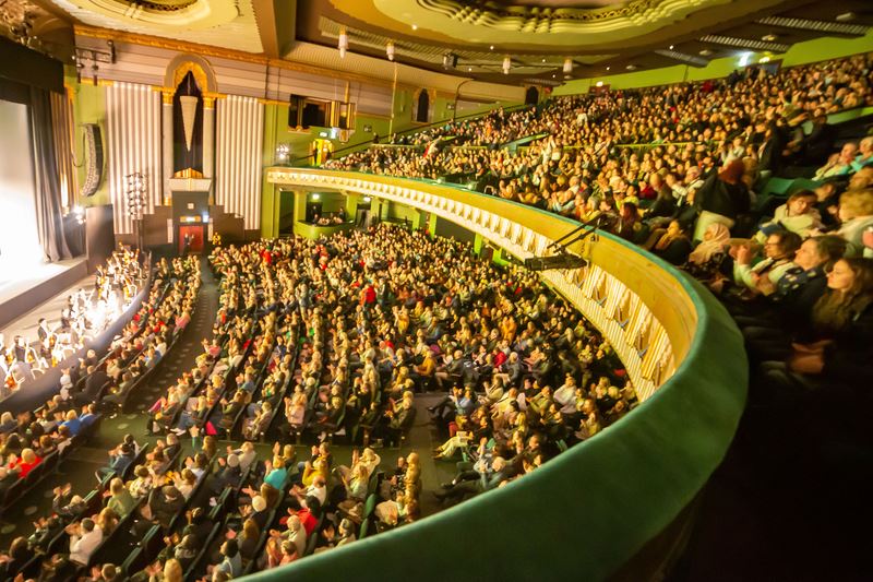 .纪.元;)'> 图2:二零二三年四月十四至二十二日,神韵巡回艺术团在伦敦汉默史密斯阿波罗剧院(Eventim Apollo)的十场演出票全售罄,场场爆满。图为十四日晚首场演出现场大爆满的盛况。(大.纪.元;) |