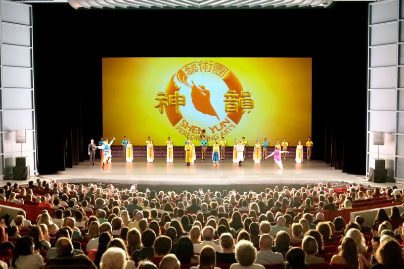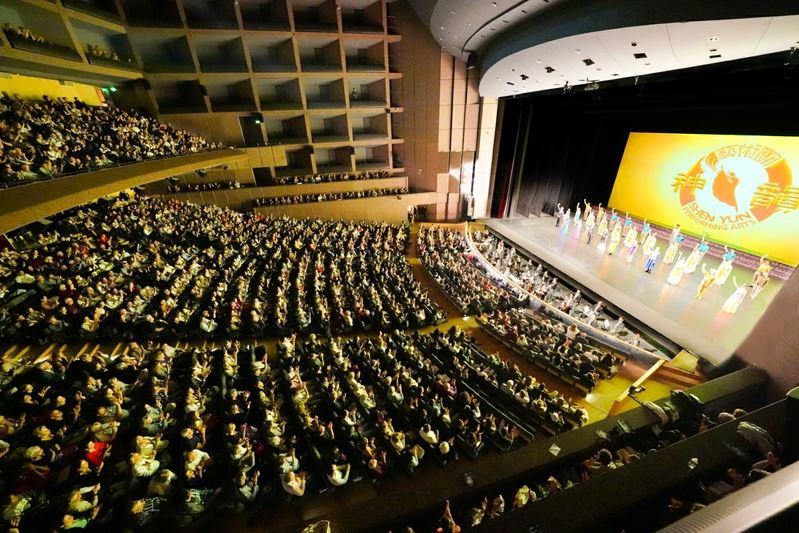 .纪.元;)'> 图4:二零二三年四月二十至二十三日,神韵世界艺术团在新西兰奥克兰奇里·特·卡娜娃剧院上演了五场,与之前会惠灵顿的五场演出一样,共十场演出均一票难求。在奥克兰的压轴场演出再次爆满加座。(大.纪.元;) |