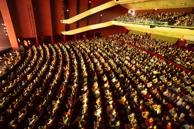 .纪.元;)'> 图5:二零二三年四月二十至二十三日,神韵北美艺术团在芝加哥郊区罗斯蒙特剧院(Rosemont Theatre)共上演了六场,其中第六场因前五场爆满,特别加演。在罗斯蒙特的第二场晚场的演出大爆满。(大.纪.元;) |