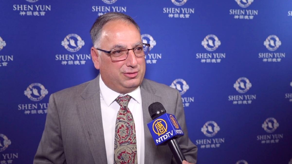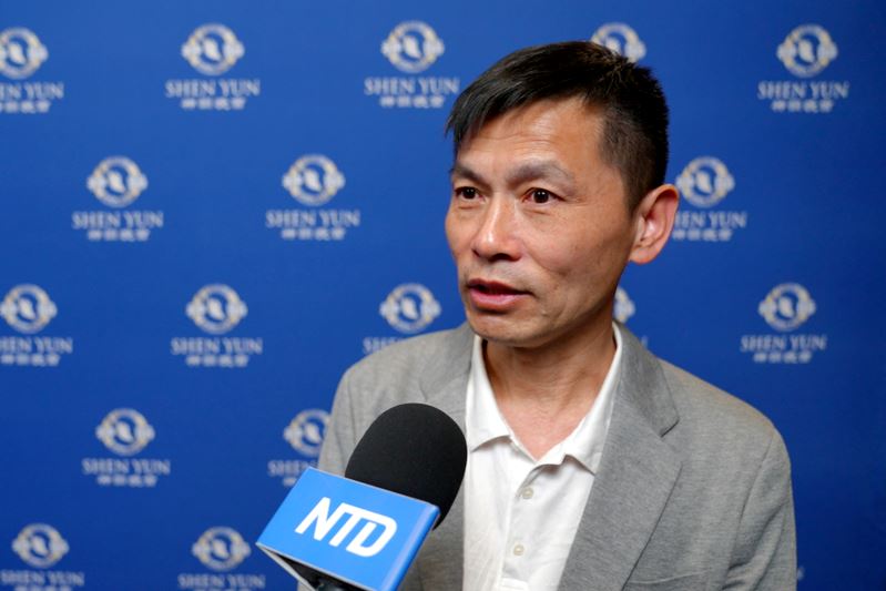 为了能看到神韵新世界艺术团在美国亚拉巴马州伯明翰市的演出,相隔二百多英里的莱沃普兰斯(Level Plains)市市长罗尼·汤普森(Ronnie Thompson)驱车三小时,演出让他感到不虚此行。 “我非常喜欢,舞蹈编排很棒,舞蹈赏心悦目,演出让人流连忘返。”从演出中汤普森感受到,“演出让我联想到高层生命。我们在履行高层生命要我们做的,还有高层空间,人世并不是人的故乡,我们都将跟创世主回到天堂。” 他说:“我会尽最大努力把神韵请到我所在的城市。我还会鼓励所有人都来观看演出,让他们都能从中获得启发。” 大陆老师:为神韵感到骄傲 !唐!人:电视台)'> 图16:四月二十一日晚,Daniel Zhai到纽约州帕切斯学院表演艺术中心观看了神韵环球艺术团在当地的第二场演出。(新!唐!人:电视台) |
