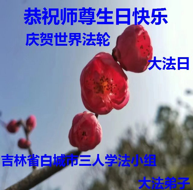 吉林省白城市三人学法小组大法弟子恭祝师尊生日快乐!恭贺五一三世界法轮大法日!