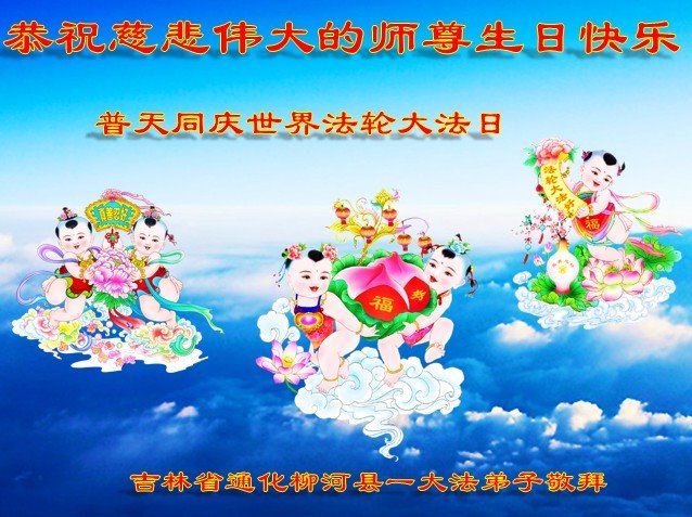 吉林辽源一大法弟子恭祝师尊生日快乐!恭贺世界法轮大法日!