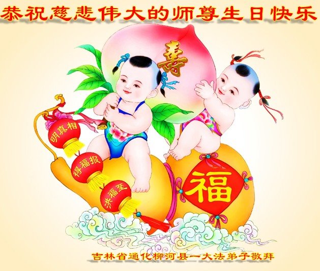 吉林省通化柳河县一大法弟子恭祝慈悲伟大的师尊生日快乐!