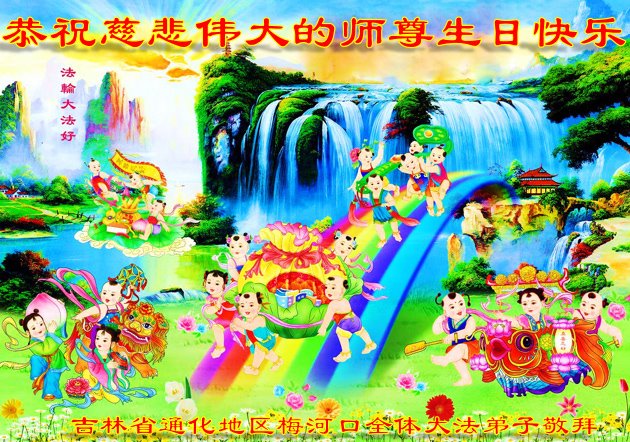 吉林省通化地区梅河口全体大法弟子恭祝慈悲伟大的师尊生日快乐!普天同庆世界法轮大法日!