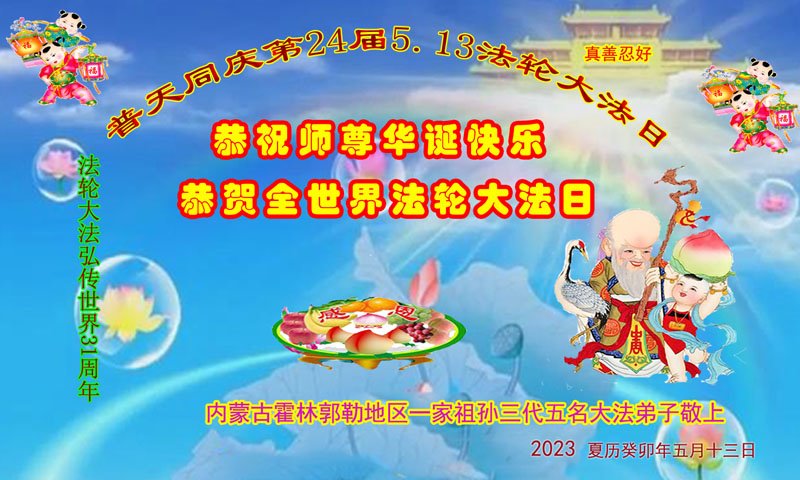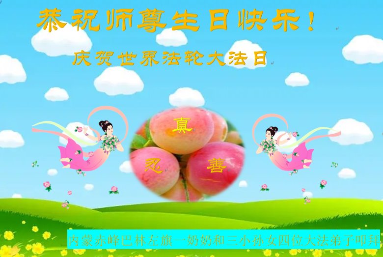 内蒙古赤峰市大法弟子全家恭祝师尊生日快乐!恭贺世界法轮大法日!