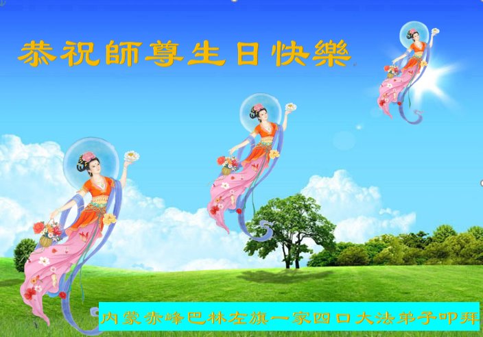 内蒙古自治区赤峰市巴林左旗一家四口大法弟子恭祝师尊生日快乐!