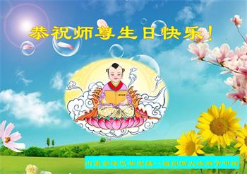 在这个普天同庆的日子里,我向师尊说一声:谢谢师尊的救度之恩,是您把我从地狱中捞起,在我生不如死的时候,得到您的救度,使我走上了返本归真的路,改变了我的人生。我一定不辜负师尊的救度之恩,学好法,做好三件事,做一个合格的大法弟子,跟师尊回家。 内蒙古自治区锡林郭勒盟多伦县全体大法弟子恭祝师尊生日快乐!