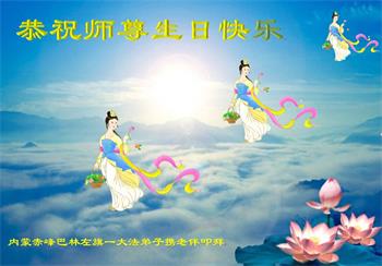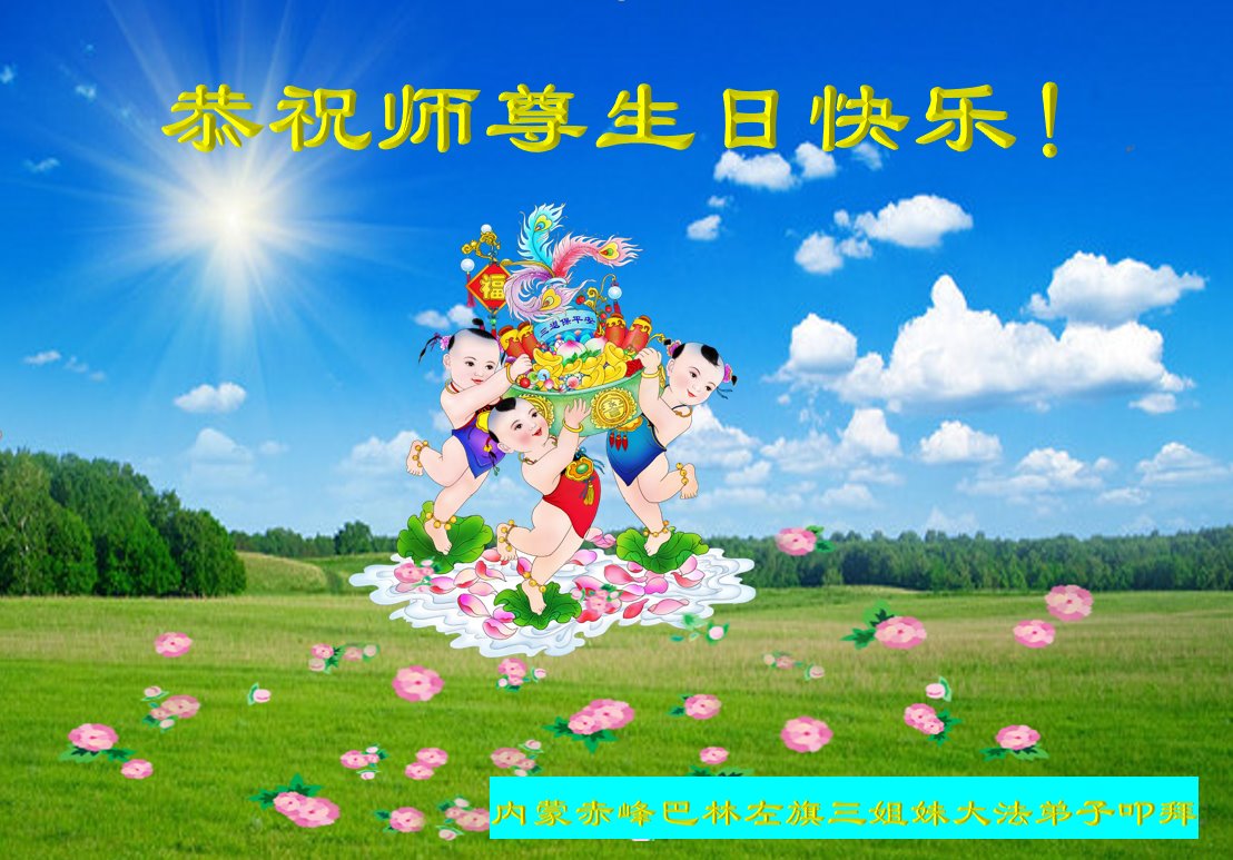 内蒙古自治区赤峰市巴林左旗三姐妹大法弟子恭祝师尊生日快乐!