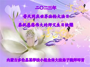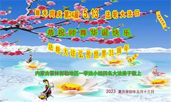 【明慧网二零二三年五月十一日】 内蒙古自治区通辽市霍林郭勒市地区一学法小组大法弟子恭祝师尊华诞快乐!
