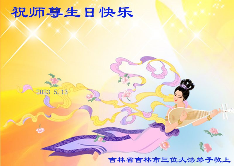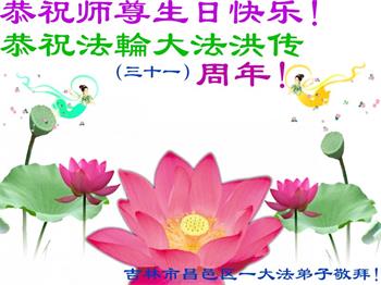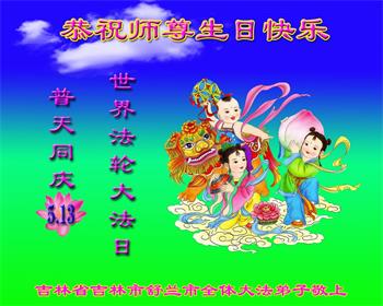 吉林省吉林市三位大法弟子恭祝师尊生日快乐! 吉林省吉林市龙潭区全体大法弟子恭祝师尊生日快乐!恭贺世界法轮大法日!