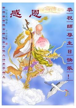 吉林市两位大法弟子:五一三祝师父生日快乐!我们二位弟子今后一定修心性去执着心,多救众生。 吉林省吉林市桦甸市大法弟子敬祝师父生日快乐!