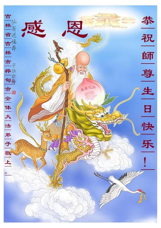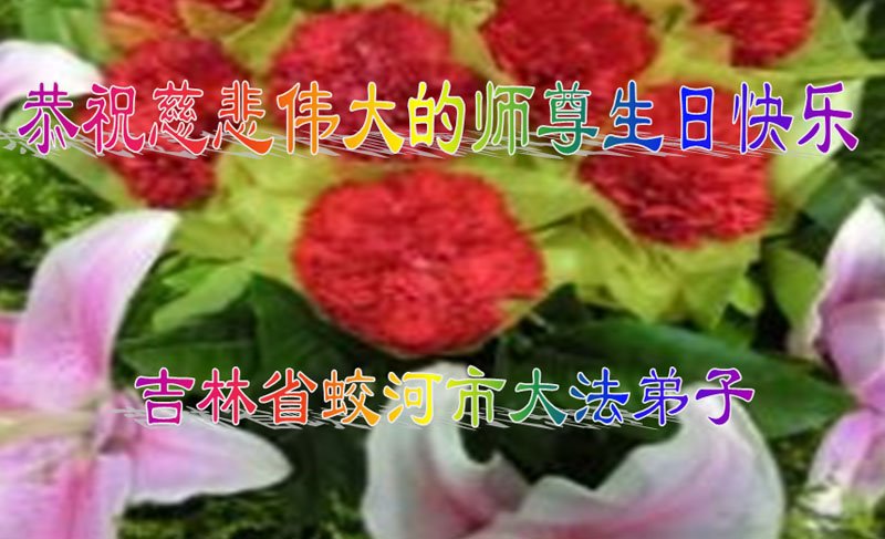 吉林省吉林市桦甸市一家大法弟子恭祝慈悲伟大的师尊生日快乐! 吉林省吉林市桦甸市全体大法弟子恭祝师尊生日快乐!