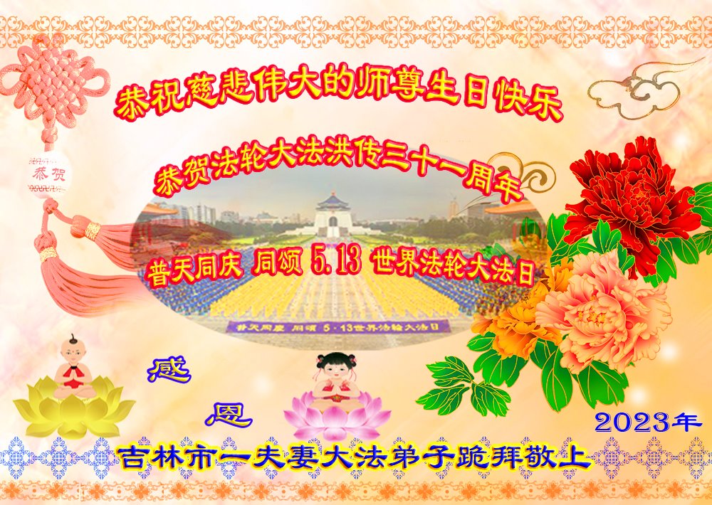 【明慧网二零二三年五月十一日】 吉林省吉林市一夫妻大法弟子恭祝慈悲伟大的师尊生日快乐!