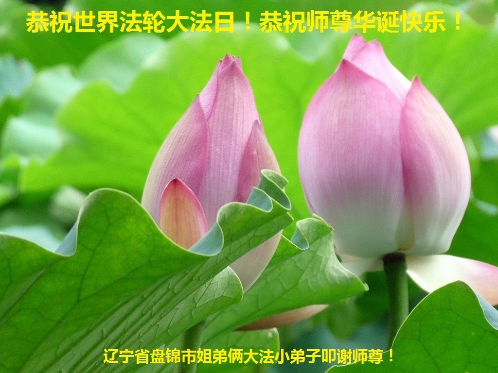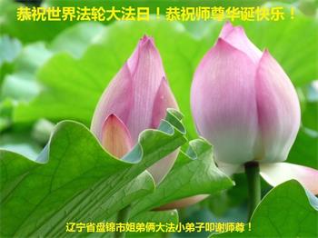 辽宁盘锦姐弟俩大法小弟子恭贺世界法轮大法日暨恭祝师尊华诞快乐!