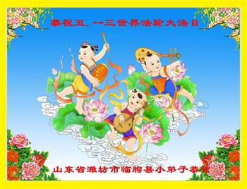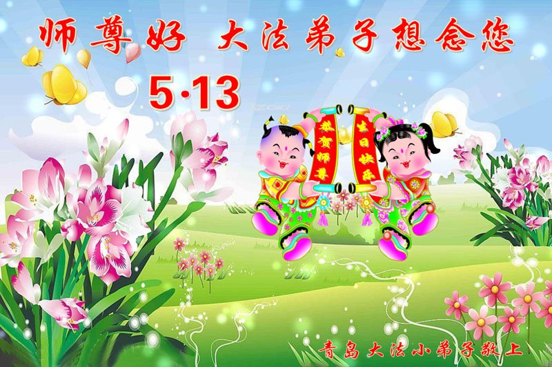 山东省青岛大法小弟子恭祝师尊生日快乐!恭贺世界法轮大法日!