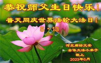 河北廊坊文安全体大法小弟子恭祝师父生日快乐!普天同庆513世界法轮大法日!