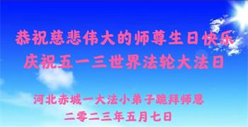 【明慧网二零二三年五月十一日】 山东省潍坊临朐县大法小弟子恭祝五一三世界法轮大法日!